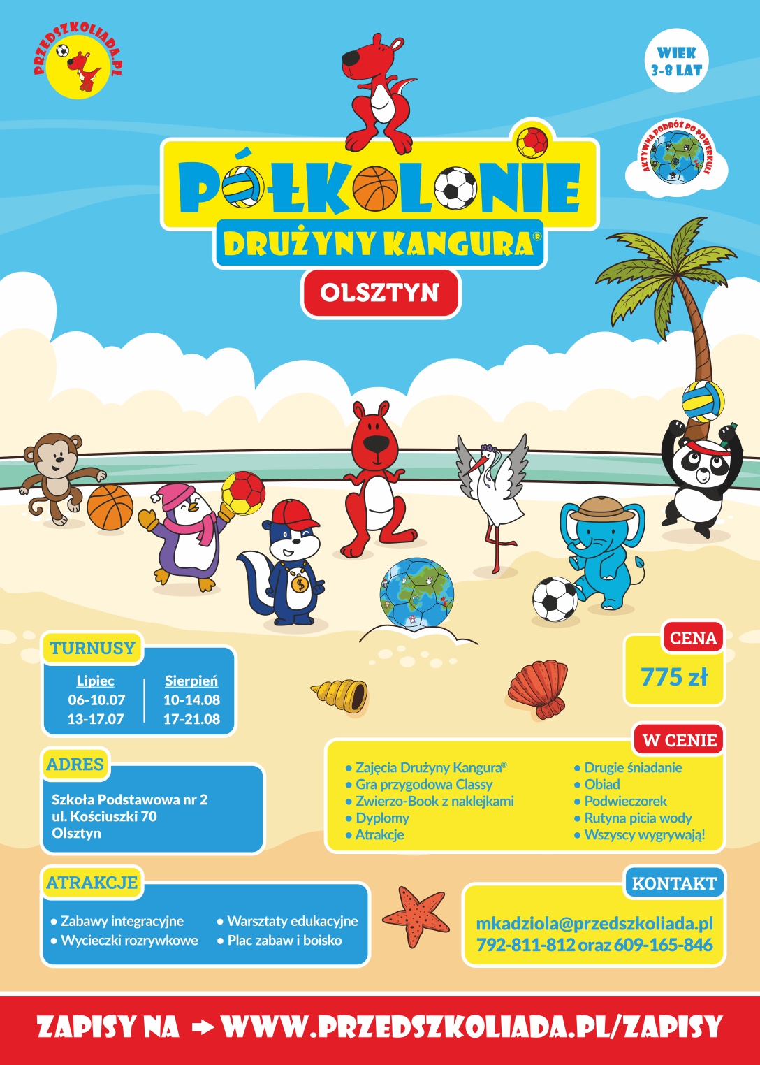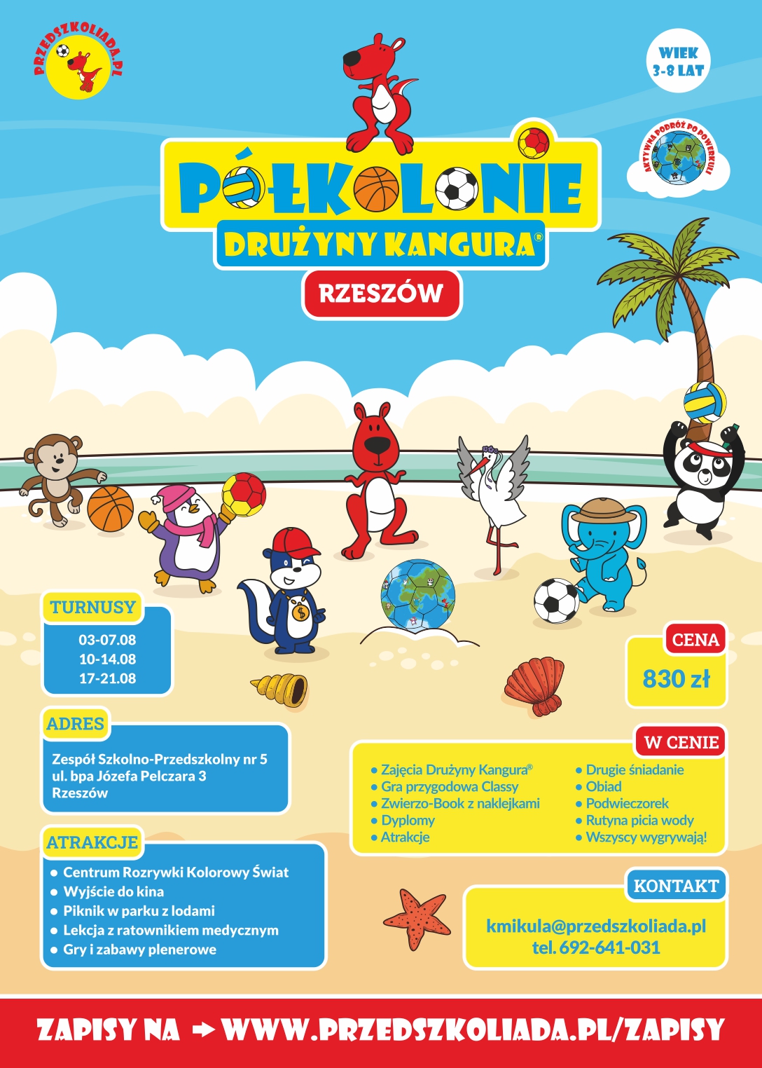 Zapisy na Półkolonie DRUŻYNY KANGURA 2026 www.przedszkoliada.pl/zapisy